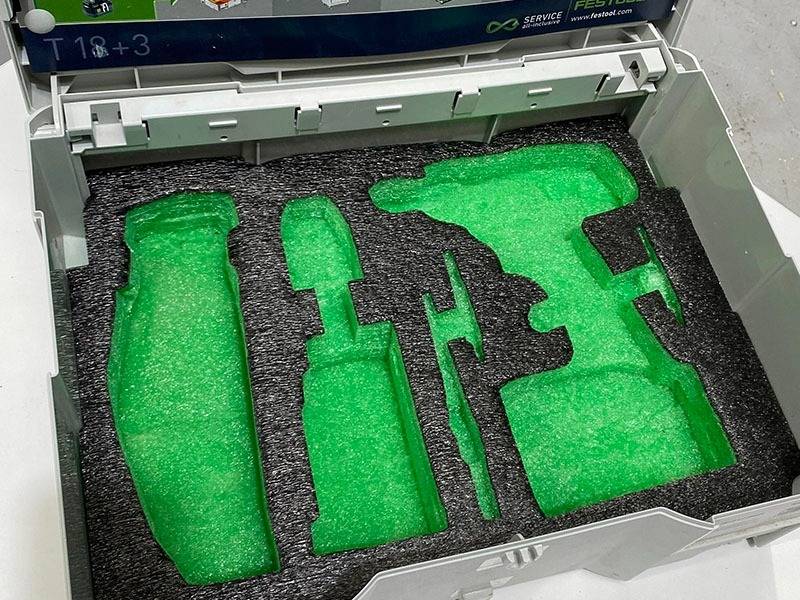 This is really up to you as it depends what you want to store in your Hikoki case and how deep the container in question is. You might even want to build up multiple layers of inserts. For small hand tools you might want to consider a 30mm depth of foam which would then allow you to cut down to a depth of around 20mm in which to house the items. Power tools might be better with a 50mm insert, giving you 40mm workable depth in which to cut them into the foam.